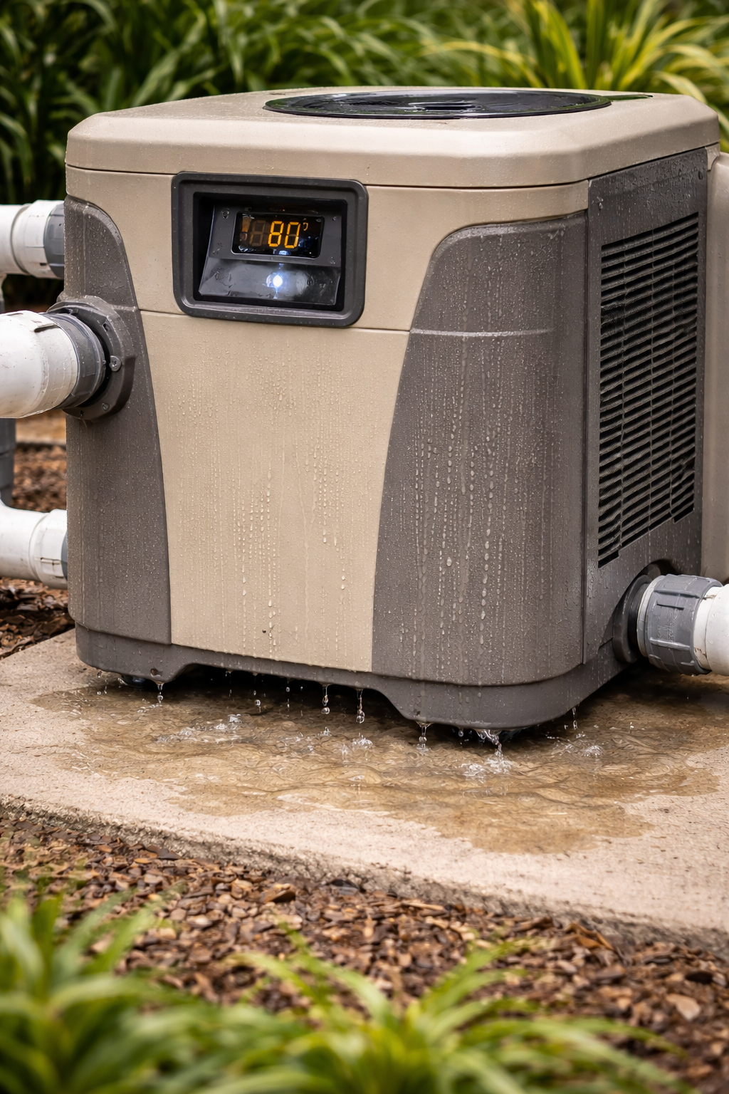 In many cases, water around your pool heater is completely normal and simply caused by condensation.
